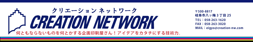 クリエーションネットーワークの ホームページへ お越し頂き、ありがとうございます。当ホームページを、マンネリの打開と、御社の さらなる飛躍につなげる『ひらめき』の きっかけに していただければ 幸いです。弊社は、様々なモノを 取り扱っております。また、未知のモノにも 挑戦いたします。御用・ご相談の際は、お電話・FAX・メールにて お問合わせくださいませ。